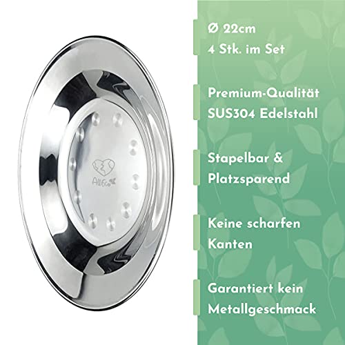 Specification: AllEco® Edelstahl Camping Teller Set 4 Stk. tief 22cm Ø Picknick & Camping Geschirr Set 4 Personen Metall…