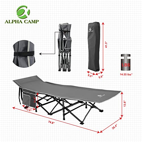 ALPHA CAMP Feldbett Klappbar, Campingbett Faltbar XL Campingliege leicht mit Seitentasche für Reisen, Indoor, Outdoor…