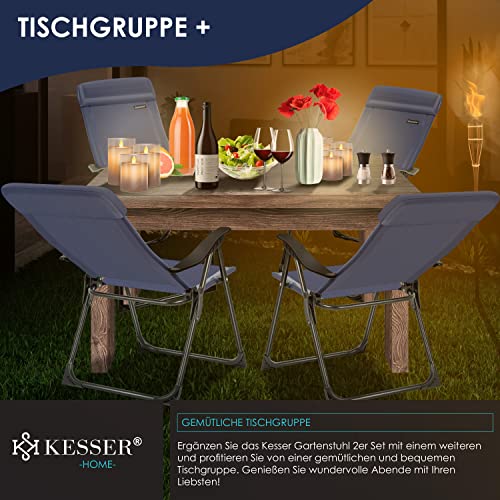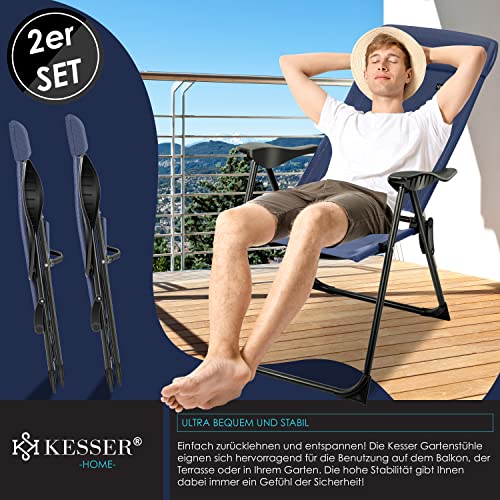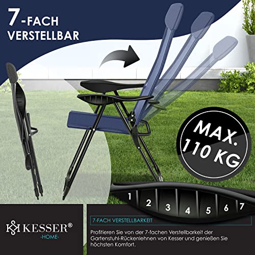 KESSER® 2er Set Gartenstuhl Hochlehner Alu Klappstuhl 7-Fach Verstellbar mit Armlehnen Atmungsaktiv klappbar Campingstuhl Balkonstuhl Klappsessel Garten Terrasse, Blau