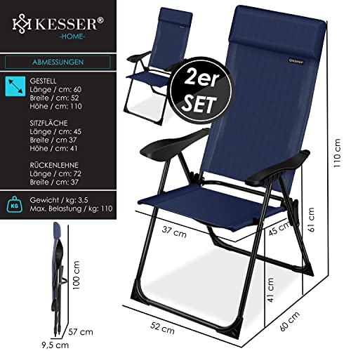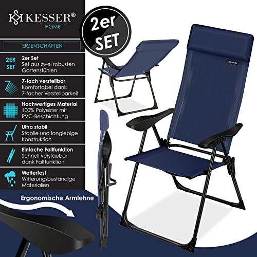 Specification: KESSER® 2er Set Gartenstuhl Hochlehner Alu Klappstuhl 7-Fach Verstellbar mit Armlehnen Atmungsaktiv klappbar Campingstuhl Balkonstuhl Klappsessel Garten Terrasse, Blau