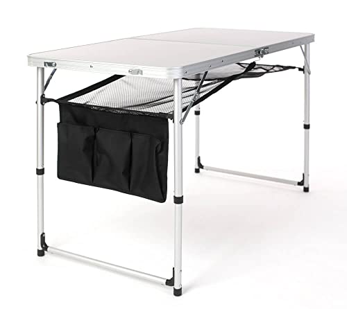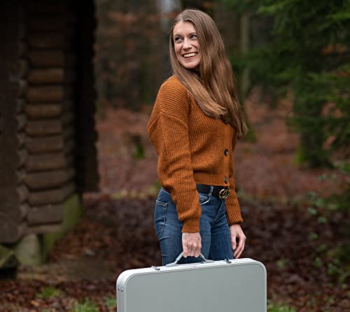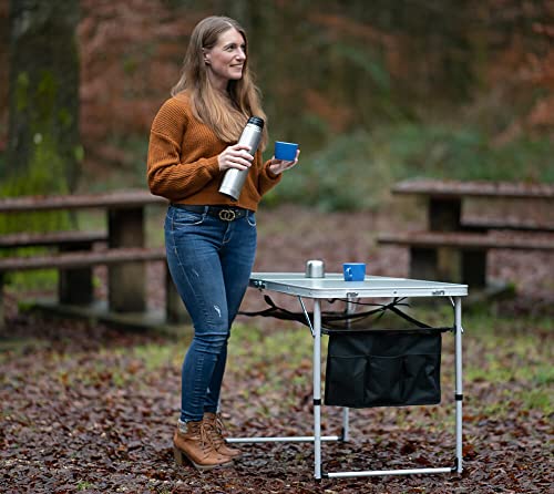 Die Tischplatte aus rostresistentem Aluminium hält einiges aus und trägt Lasten bis zu 30 kg. Die mitgelieferten 4 Campingstühle können dank reißfestem 600 D Polyester mit bis zu 100 kg belastet werden. Das Untergestell des Tisches und der Stühle ist aus langlebigem Aluminium.