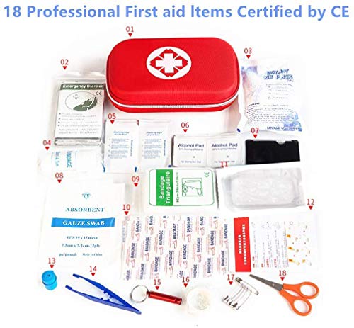 🌸IDEALE GRÖSSE: die kleinen Maße (20x13x5cm) und das geringe Gewicht (450g) des Mini Verbandskastens sind perfekt für Wandern, Camping und Fahrrad fahren geeignet. Reisefreundliches Design hochwertiges EVA- & Nylonmaterial mit vollständig geöffnetem Reißverschluss, stark dauerhaft wasserdicht und stoßfest