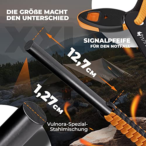 VULNORA Feuerstahl – 12,7cm Länge Ø1,27cm [Paracord Griff] Signalpfeife | Feuerstarter XXL – Feuerstein Survival Outdoor…