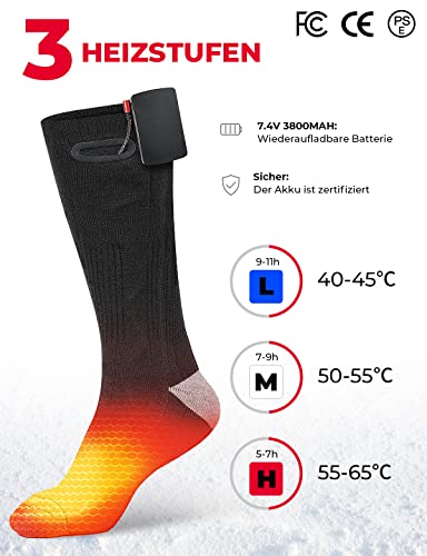 Beheizbare Socken, 3800mAh beheizte Socken, Wiederaufladbare Heizsocken, Winter-Baumwollsocken, Fußwärmer für Skifahren…