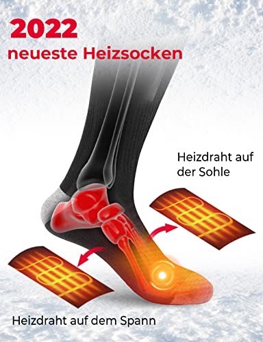 【Heizung um oben und unten】Im Vergleich zu den beheizbaren Socken, die nur an den Fußsohlen wärmen,der Heizdraht wird um unsere Heizsocken gewickelt.Die beheizbare Socken bieten genug Wärme für die kälte Füße.