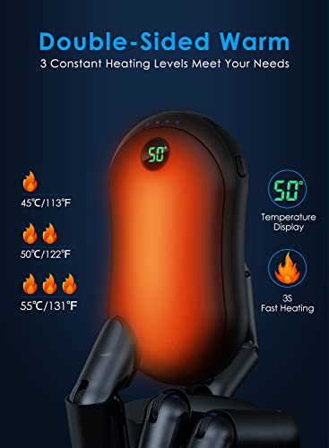 【2s Schnelles Aufheizen & Doppelseitiges Aufheizen】Handwärmer heizen schnell 2s auf, drücken Sie einfach den Schalter und geben Sie die Wärme sofort für Sie ab. einstellbar auf 45 ℃, 50 ℃ und 55 ℃ , Der doppelseitige Heizbereich ist größer als andere, wickeln Sie Ihre gesamten Hände ein und erreichen Sie schnell die Temperatur. Menschen mit Raynaud-Krankheit oder Dysmenorrhoe können es als Wärmepackung verwenden, um den schmerzenden Bereich durch simulierte Wärmetherapie zu erwärmen