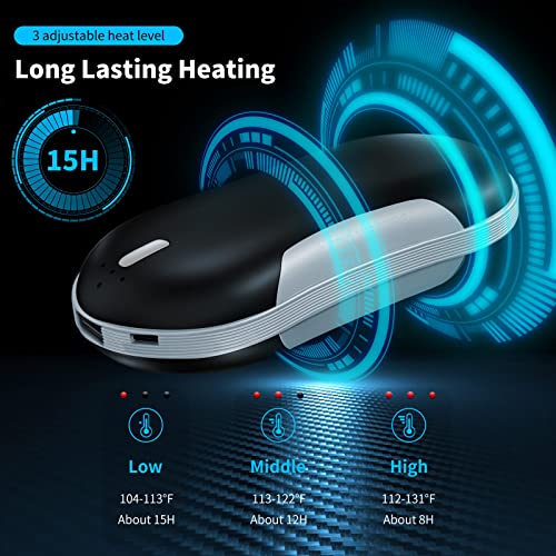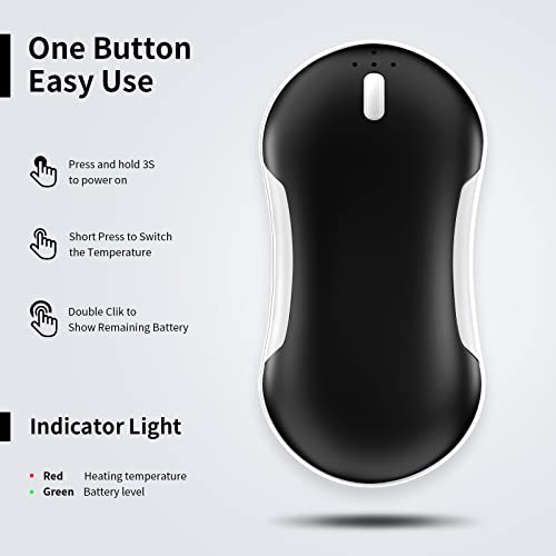 【10000 mAh Große Kapazität für Lange Lebensdauer】: 10000 mAh große Kapazität kann herkömmliche digitale Geräte auf dem Markt dreimal voll aufladen und mit 5 V/2 A Hochgeschwindigkeitsübertragung. 4-5 Stunden für eine volle Aufladung und 7-15 Stunden lange Drücken Sie den Schalter und geben Sie sofort die Wärme für Sie frei. Schnelles Aufwärmen von Doppelseiten in Sekunden. 3 Temperaturstufen 115±°F/125±°F/140±°F (45/50/55°)nach Wahl