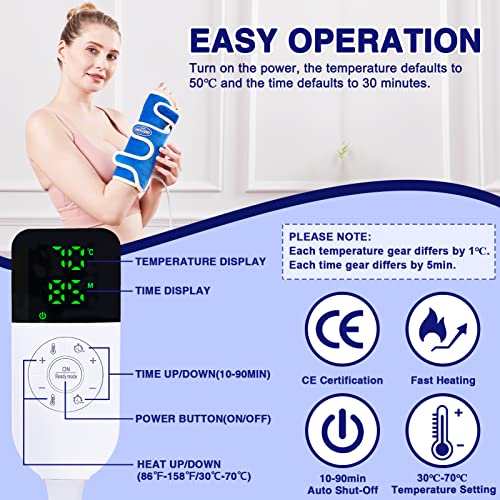 【Automatisches Ausschalten und einstellbare Temperatur】 Die Temperatur ist von 30 ℃ bis 70 ℃ einstellbar, Sie können die Wärme innerhalb von 5 Sekunden mit dem fortschrittlichen dichten Heizdrahtdesign spüren. 10 – 90min Zeit einstellbar. Die Zeit ist abgelaufen, das Gerät schaltet sich automatisch ab, was sehr sicher und energiesparend ist. Sie können Temperatur und Zeit einfach steuern, um sich Ihrem Komfort anzupassen.
