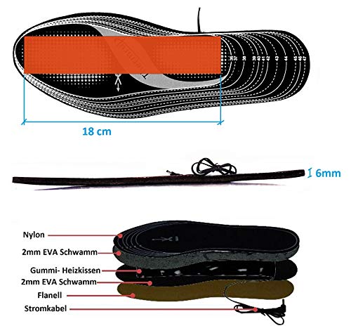 Specification: Thermrup Beheizbare Einlegesohlen Thermosohlen Akkubetrieb(4 Heizstufen), Größe: 35-48(zuschneidbar),waschbar