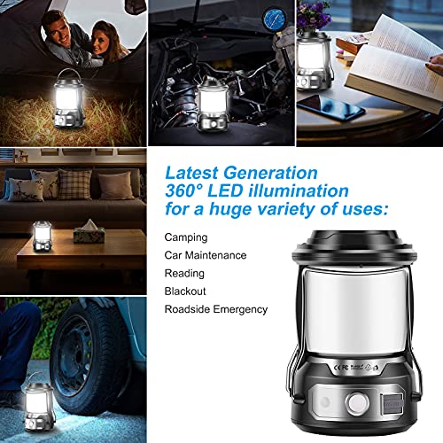LED Campinglampe, Tragbare LED Camping Laterne, Wiederaufladbare USB Lampe mit Bügel und Haken, 5200mAh Dimmbar…