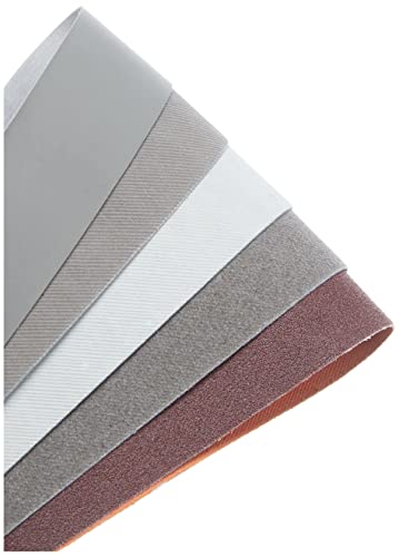 Lieferung mit jeweils einem Band (1″ x 18”) in den Körnungen X65 (entspr. Körnung P220), X22 (entspr. Körnung P1000), X4 (entspr. Körnung P3000), P12.000 Micromesh.