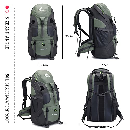 Bseash 50L Leichter wasserfester Wanderrucksack, Outdoor Sport Tagesrucksack Reisetasche für Klettern Camping Reisen