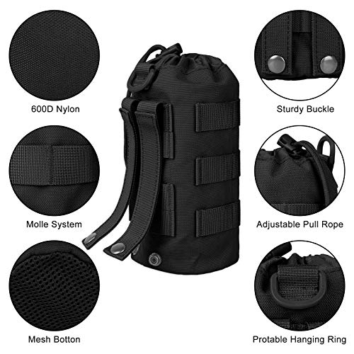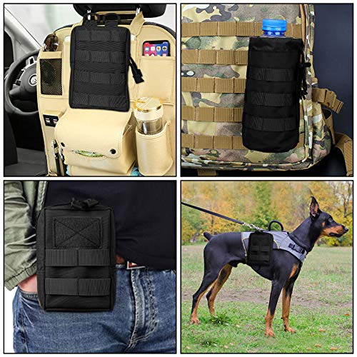 WAS SIE ERHALTEN: Das Paket enthält 2 schwarze taktische Beutel, 1 Wasserflaschenbeutel und 3 Karabiner. Abmessungen: 8,7 x 4,9 x 2,2 Zoll (groß), 6,3 x 4,3 x 2,2 Zoll (klein), 9,2 x 3,9 Zoll (Flaschenholster).