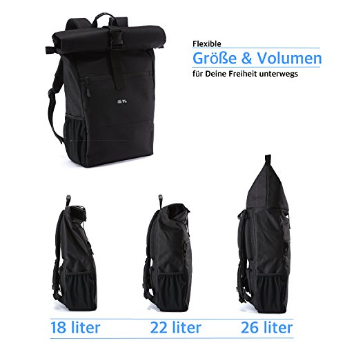 FLEXIBLE GRÖSSE: Durch das variable Volumen (18 bis 26 Liter) ist der Daypack als kompakter Handtaschenersatz zur Entlastung der Schultern genauso geeignet, wie als robuster Tagesrucksack, der selbst vollgepackt nicht klobig wirkt.