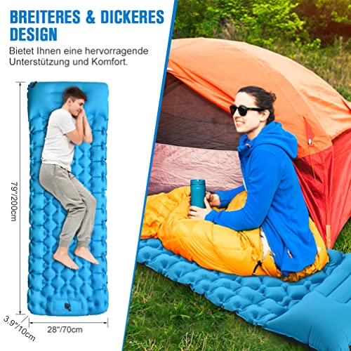 【3inch Dicke komfort Luftmatratze 】Unsere Schlafunterlage ist dicker und breiter im Vergleich zu anderen ähnlichen Produkten.Die 3inch Dicke ist in der Lage, Sie von dem feuchten Boden und harten Steinen zu isolieren. Außerdem wird das ergonomische Luftzellen-Design Sie bequem unterstützen und Ihre verschiedenen Schlafhaltungen befriedigen (kommt mit Kissen)