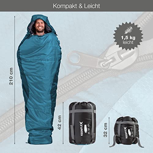 KEENFLEX Schlafsack – 3 Jahreszeiten Mumienschlafsack Ideal für Camping Outdoor Backpacking -12°C Extrem