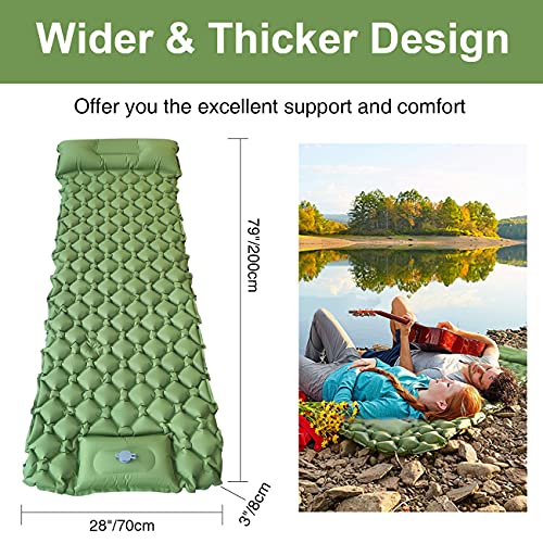 ⛺【Bequemer & größere Größe】200 * 70 * 6 cm (78,7 * 27,6 * 2,4 Zoll) Ermöglicht es Ihnen, Ihre Gliedmaßen nach einem schwierigen Aufstieg oder einer langen Wanderung beliebig zu strecken. Die Schlafmatte mit integriertem Kissen bietet Ihnen unübertroffenen Komfort für das idealste Schlaferlebnis.