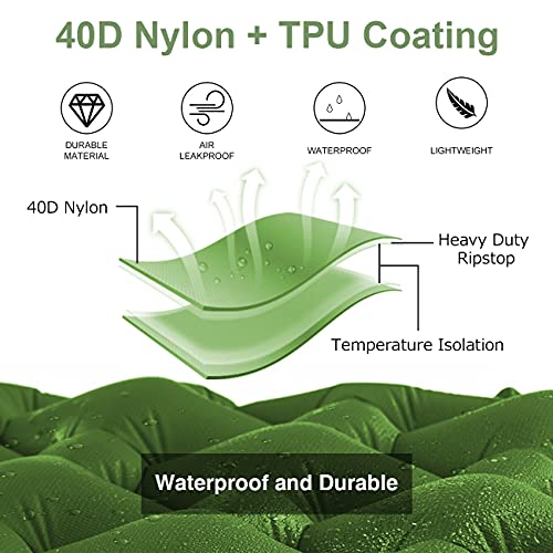 ⛺【Langlebige & leckagesichere Materialien】Die selbstaufblasende Campingmatte besteht aus verdicktem 40D-Nylon mit TPU-Beschichtung, wodurch die Campingunterlage stark abrieb- und kompressionsbeständig ist und nicht leicht zu reißen und zu ziehen ist. Mit doppeltem auslaufsicherem Entleeren Design, die Camping-Isolierunterlage lässt während des Schlafens keine Luft aus.