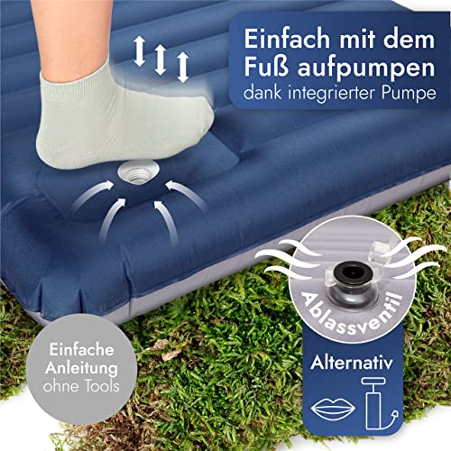 🌄KOMFORTABEL & PRAKTISCH: Mit der integrierten Fußpumpe bläst Du die Isomatte innerhalb kurzer Zeit mit Leichtigkeit auf. Dank des großen Kompressionssacks funktioniert auch das Verstauen mühelos.