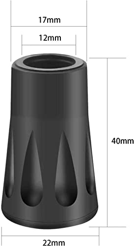 Spezifikationen: Material: Gummi Farbe: Schwarz Höhe: 40 mm Qualität: 10 Stück / 5 Paar Innendurchmesser: 12mm Funktionen Das hochwertige Material verspricht eine lange Lebensdauer. Sie helfen, zusätzlichen Halt zu gewinnen und Ihre Reise zu erleichtern. Erhöhen Sie die Griffigkeit des Stocks, um das Gehen und Klettern sicherer zu machen. Der Lochdurchmesser beträgt 1.2 cm und macht die Pads somit für fast alle gängigen Nordic Walking Stöcke geeignet. Die Basis hat einen Durchmesser von 22 mm und bietet eine größere Kontaktfläche zwischen dem Trekkingstock und dem Boden, was die Reibung erhöht. Es kann Ihnen helfen, gleichmäßig zu gehen.