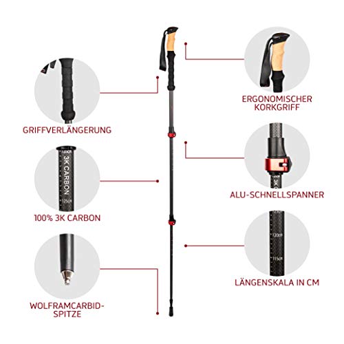 Specification: Rothwild Wanderstöcke, Modell Steinbock, Trekkingstöcke aus Carbon mit Kork-Griff, für Damen und Herren, Länge 105-135cm