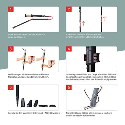 ✔ MÜHELOSES HANDLING – Mit dem Speed Lock Schnellspanner lassen sich die Wanderstöcke faltbar mühelos individuell verstellen & platzsparend in der Tragetasche verstauen
