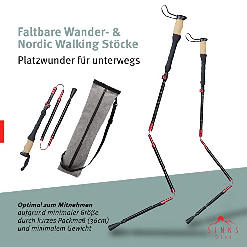 SENNS GEAR® Wanderstöcke faltbar Aluminium inkl. Tasche | Extra stabile Nordic Walking Stöcke Damen & Herren mit 5…