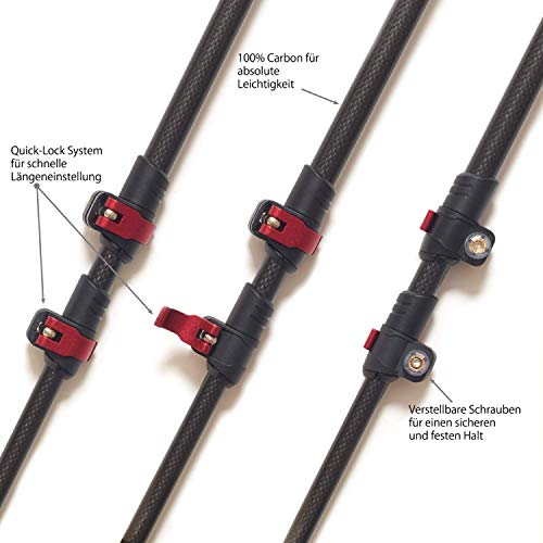 GELENKSCHONEND: Die Trekking-Stöcke aus 100% hochmodularem Carbon absorbieren Stöße und beugen Sportverletzungen vor. Ein zusätzliches Anti-Schock-System wird somit überflüssig. Das extrem leichte Material unterstützt ihre Bewegungsfreiheit beim Wandern auf Asphalt, Gelände oder durch Schnee und Eis