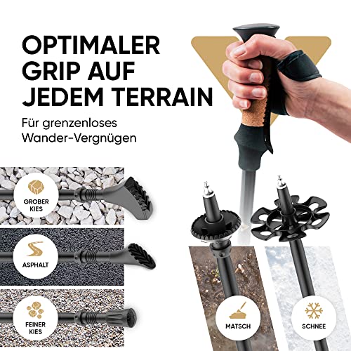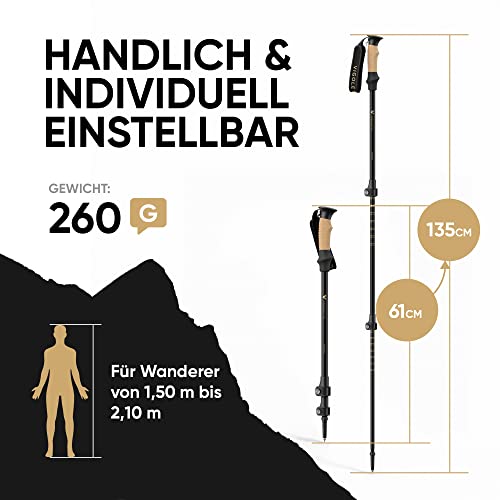 💪 𝗦𝗽𝗼𝗿𝘁𝗹𝗶𝗰𝗵 𝗸ö𝗻𝗻𝗲𝗻 𝘄𝗶𝗿! – Für dynamische Wandersportler gibt es nichts Lästigeres als klappernde und vibrierende Faltstöcke. Unsere überlegene Teleskopbauweise sorgt für ein entspanntes Führen des Stocks und damit für größten Komfort und das beste sportliche Erlebnis.