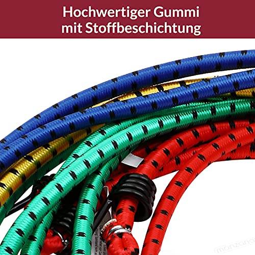 ROBUST UND ZUVERLÄSSIG: Die Gummispannseile bestehen aus widerstandsfähigem und witterungsbeständigem Material. Dank des stabilen Flechtmantels sind die Latexfäden im Inneren geschützt. Somit können Sie die Spanngurte lange und zuverlässig nutzen.