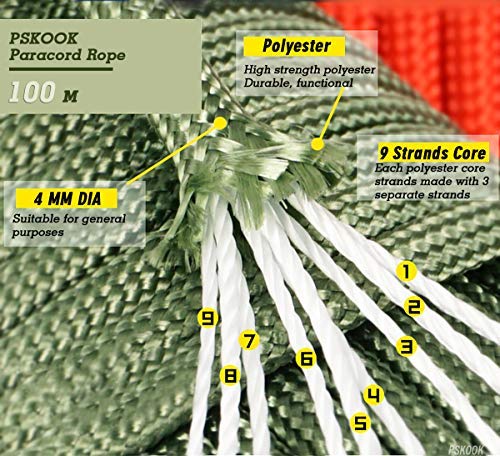 PSKOOK Paracord 550LB Multifunktion 9 Stränge Paracord Rolle in 100m, Bündel in 31m, Zelt Seil Ultimate Survival…