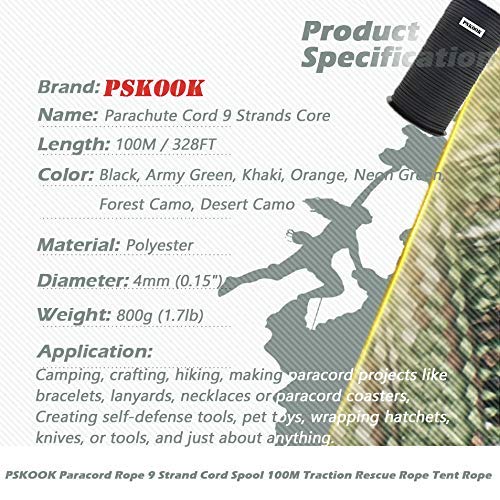 Specification: PSKOOK Paracord 550LB Multifunktion 9 Stränge Paracord Rolle in 100m, Bündel in 31m, Zelt Seil Ultimate Survival…