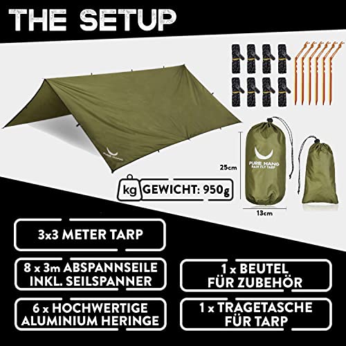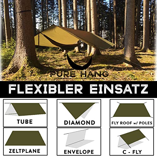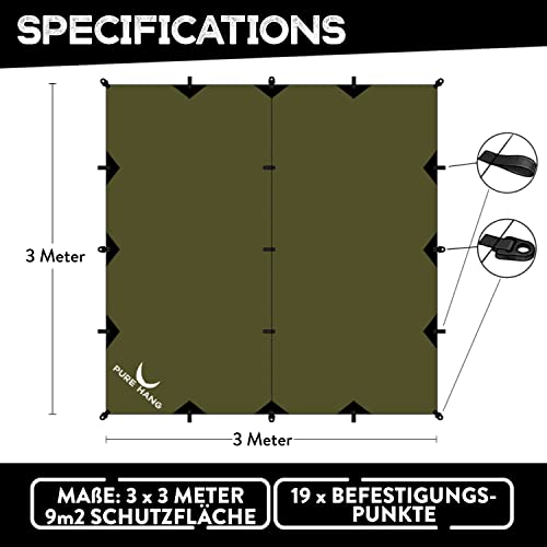 PURE HANG Premium Zeltplane Tarp 3×3 für Hängematte Outdoor Camping 100% Wasserdicht mit Ösen Sonnensegel Strand Ultra…